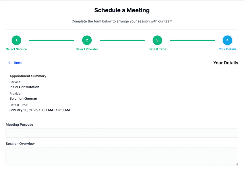Create personalized calendars for business owners, consultants,doctors, therapists, teams, and services. Share booking pages with automated reminders that reduce no-shows and save staff time.